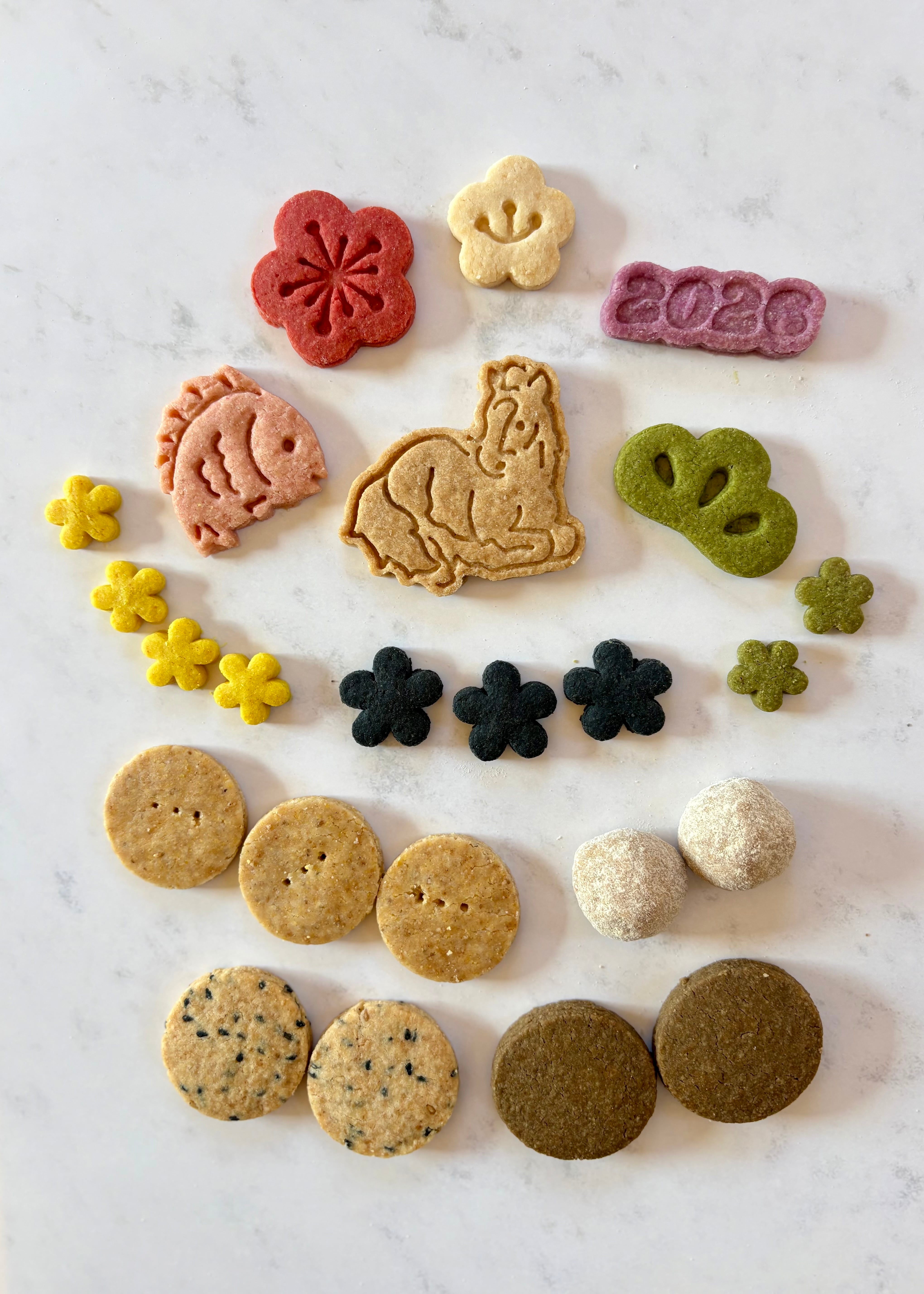 抹茶、竹炭、ビーツ、紫芋、いちご、焙煎玄米粉、