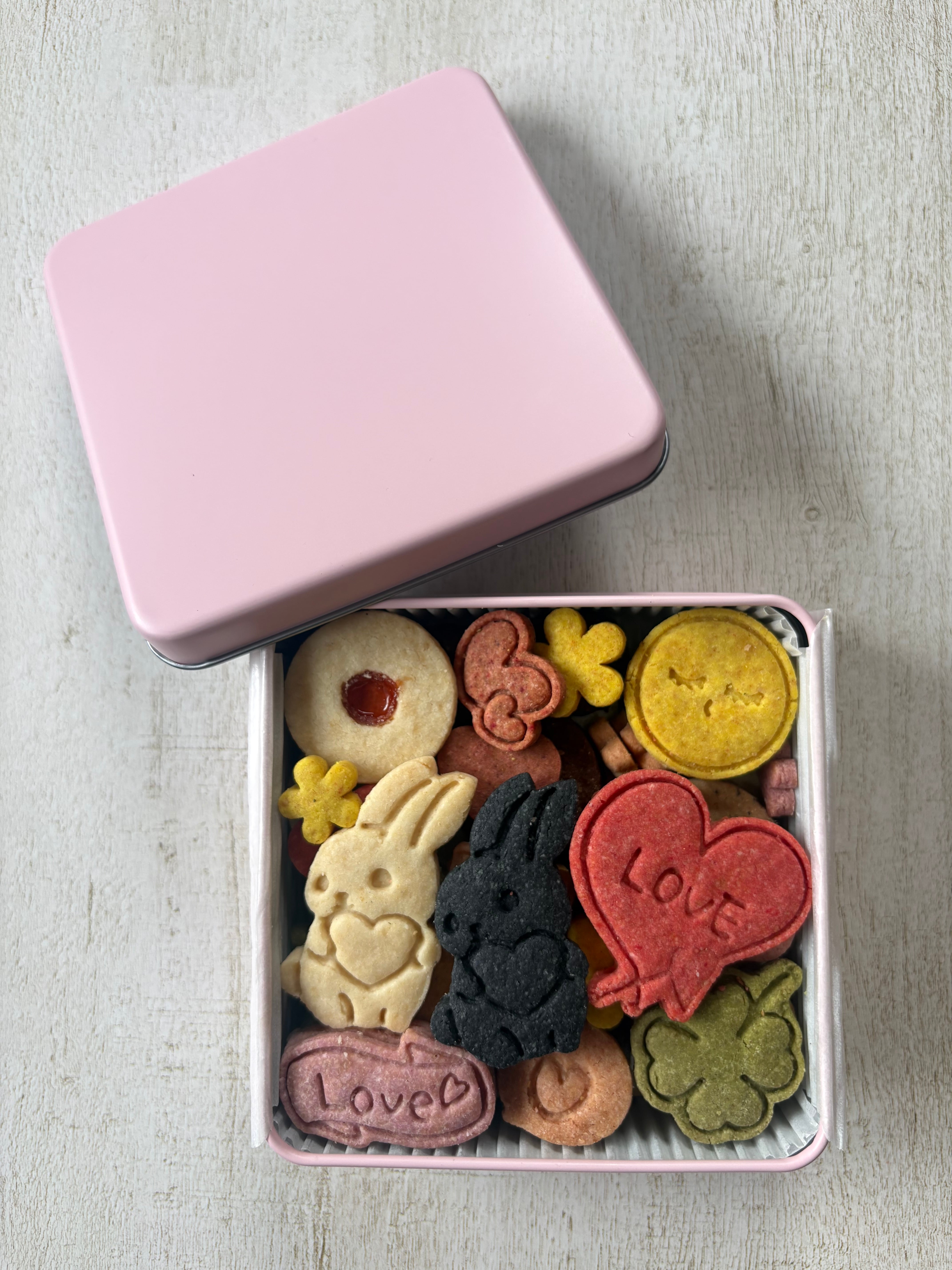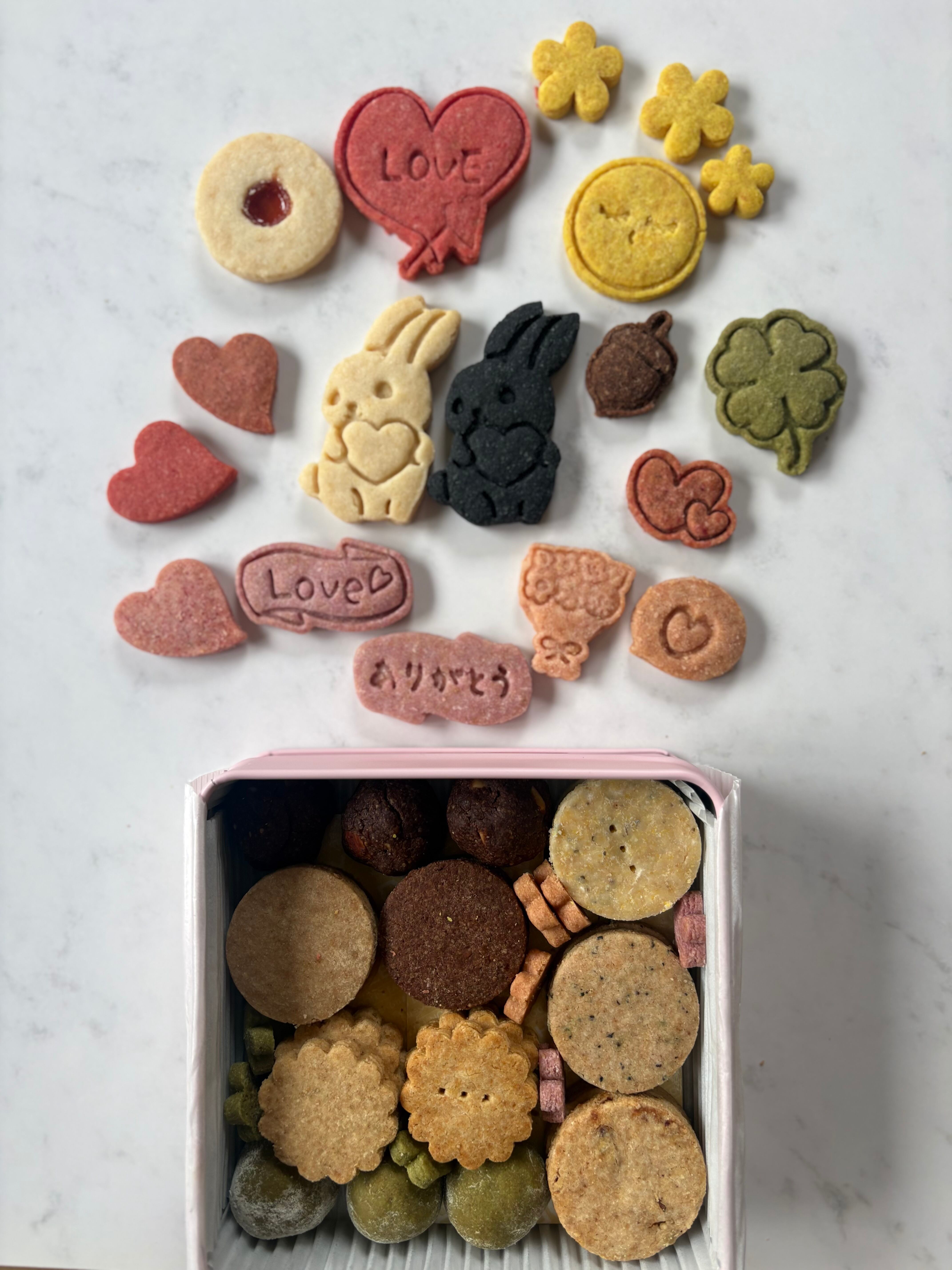 「LOVE」と「ありがとう」のメッセージクッキー入り。