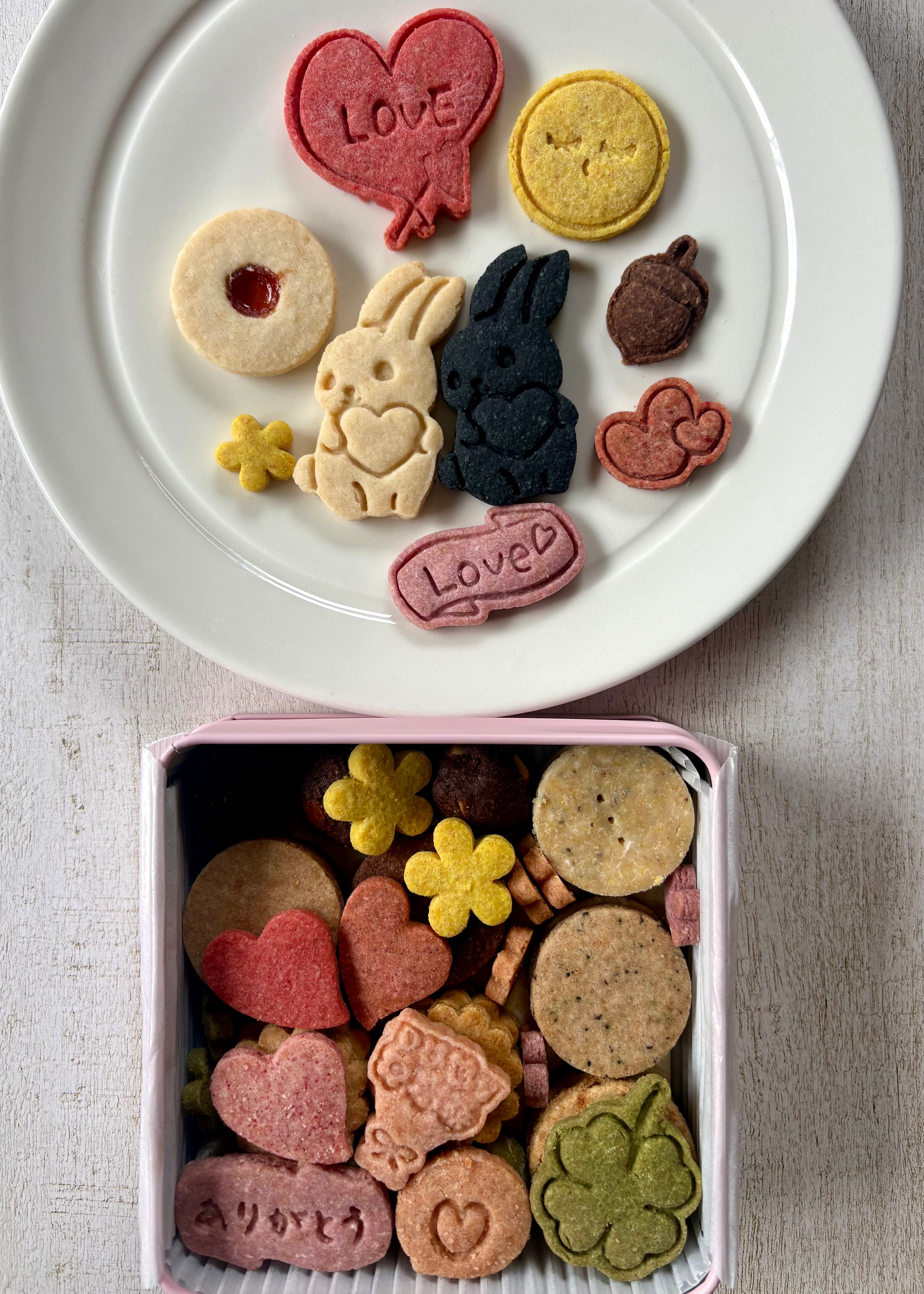 *クッキーには小麦粉や卵、乳製品は使用しておりませんが、工房では、小麦粉や卵、乳製品を使用したものも作っています。道具なども共用していますので、小麦粉、卵、乳製品、ナッツなどのアレルギーのある方はご注意ください。